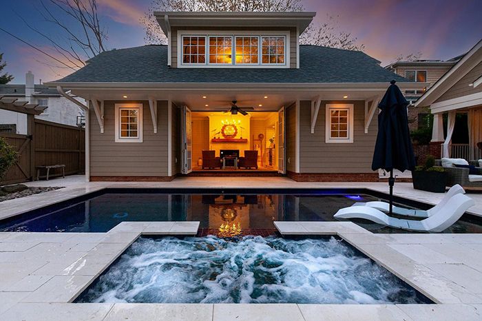 Why we love it: This transitional-styled home has a swimming pool and a guest house for hosting friends and family.