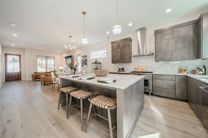 Why we love it: The sleek kitchen cabinetry is one of many features that pairs well with the minimalist design of this contemporary home.