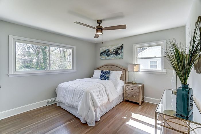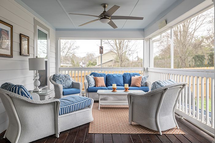 - Notable features: shaded front porch, modern light fixtures, hardwood floors, fireplace, walk-in closet, open layout, open kitchen shelving, screened-in patio, stand alone tub and fenced-in backyard.