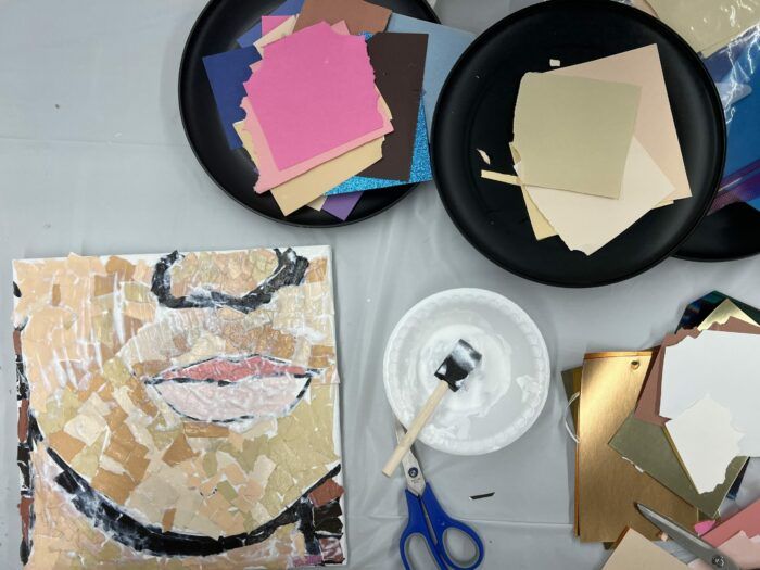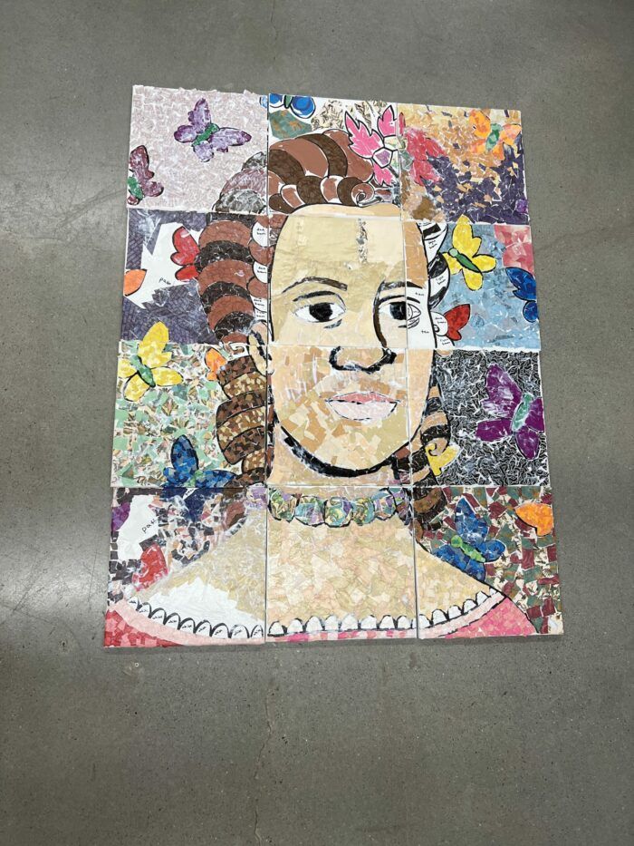Our group worked on individual pieces that, when put together, created a portrait of Queen Charlotte. Photos: McKenzie Rankin/Axios
