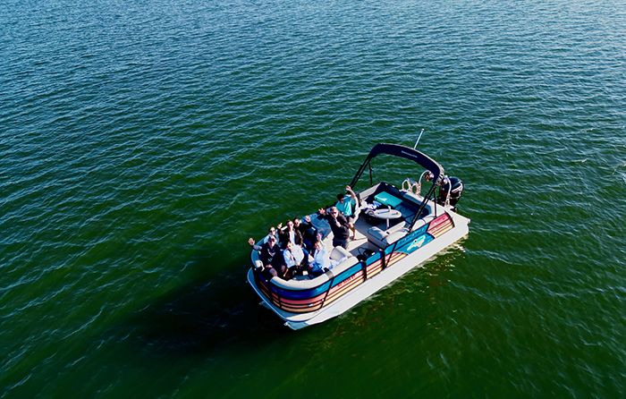 - On board, you’ll find karaoke, inflatables, water skis and tubes.