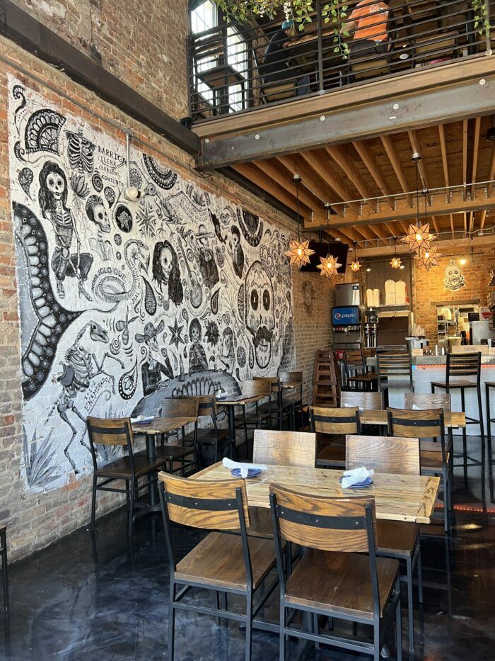 - A industrial-feel to the interior, rather than Que Onda’s typical colorful taqueria vibe.
