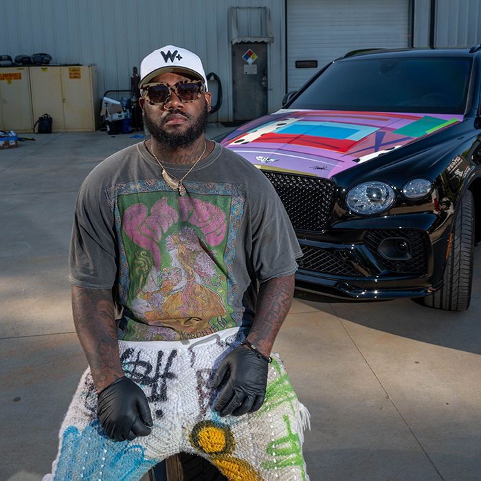 Zombie, who’s known for painting on unconventional surfaces, painted the hood of a Bentley Bentayga. The car, AKA The Frankie Zombie “Catch Me If You Can,” is the newest addition to Goldsainte’s fleet of luxury cars.