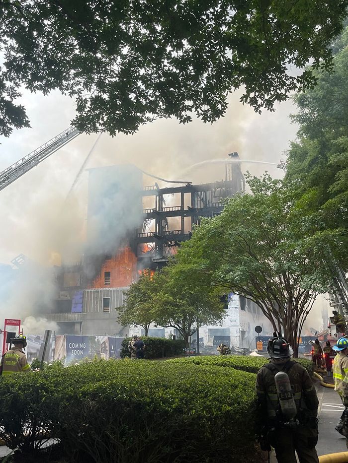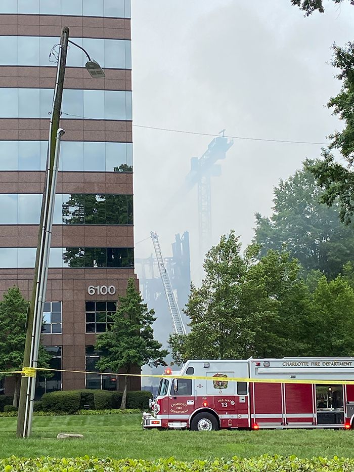 The latest: As of 1pm, two construction workers are unaccounted for. Charlotte Fire Department is still working to extinguish the fire and determine the cause.