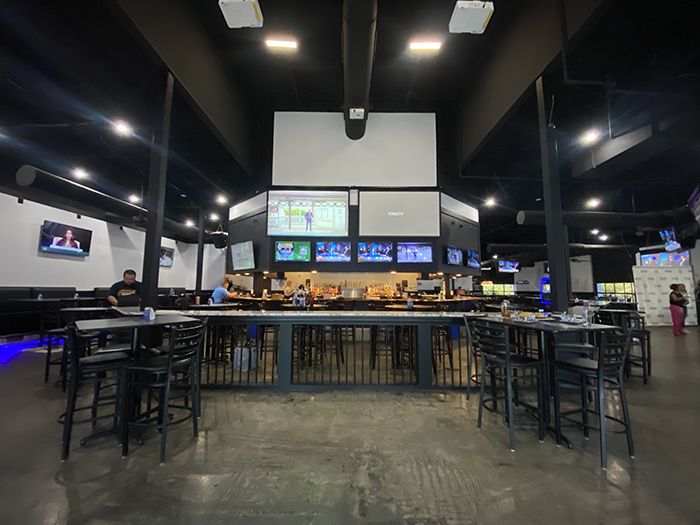 - Multiple flat-screen TVs surrounding the entire bar will broadcast races along with college and professional games.
