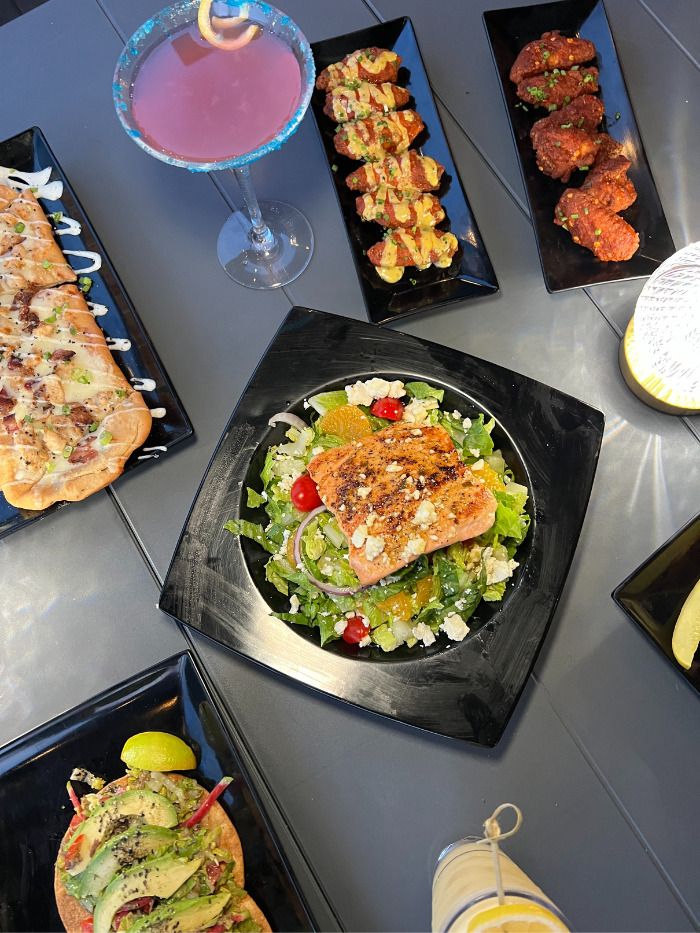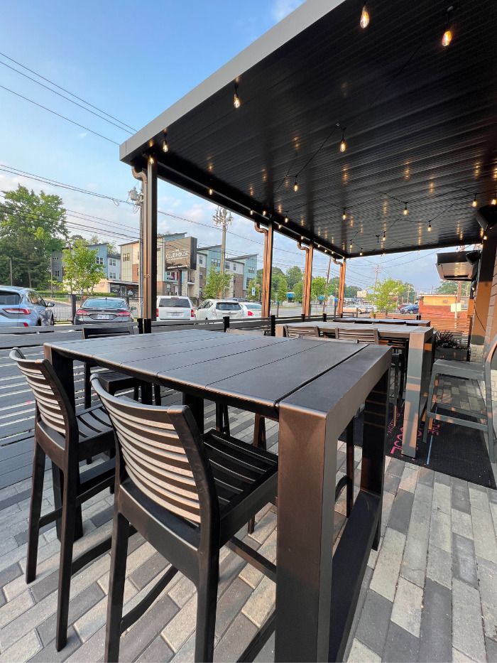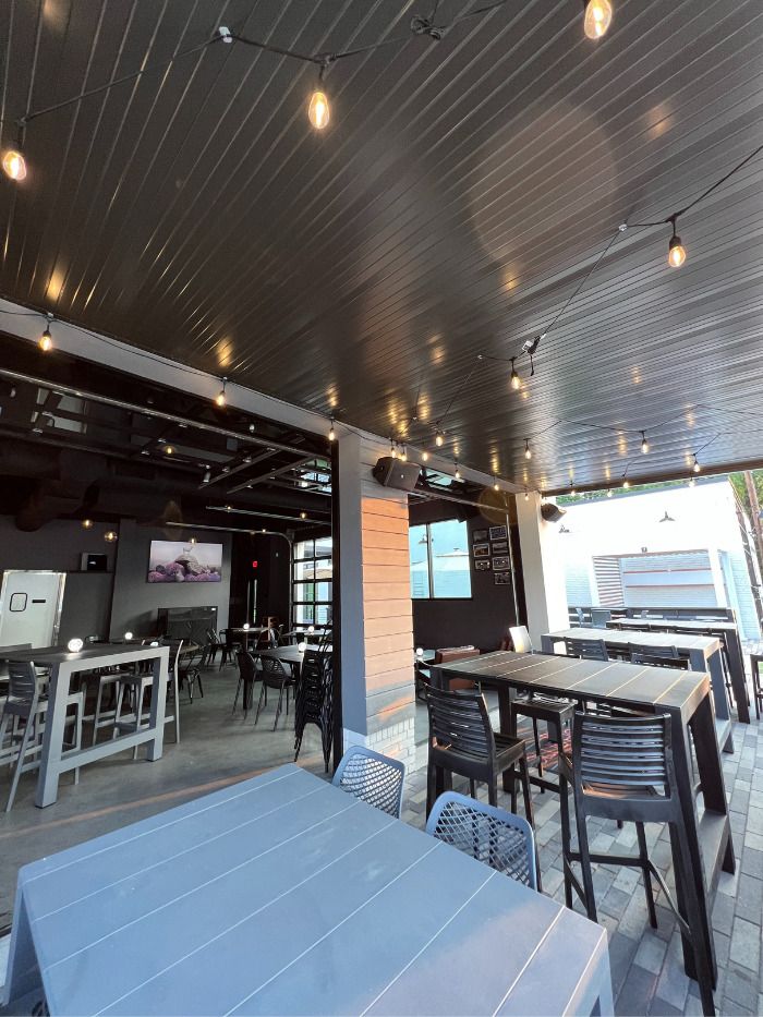 - There’s also indoor and outdoor seating, including a full bar and two outdoor patios.