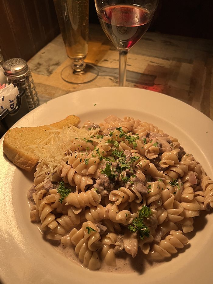 Must-order dish: Stroganoff ($19.75) with aged beef, mushrooms and rotini pasta served with red wine, shallots and sour cream sauce.