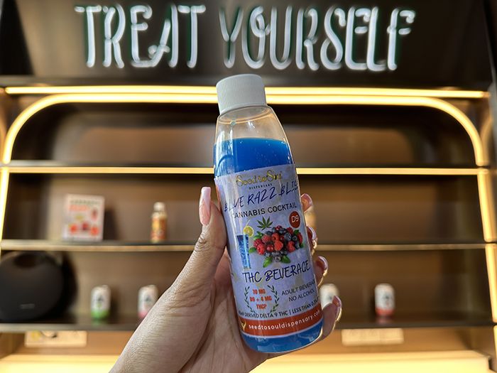 - “We want people to feel relaxed and euphoric when they shop with us, so occasionally we offer complimentary Delta-9 infused sample shots,” Thaker says.