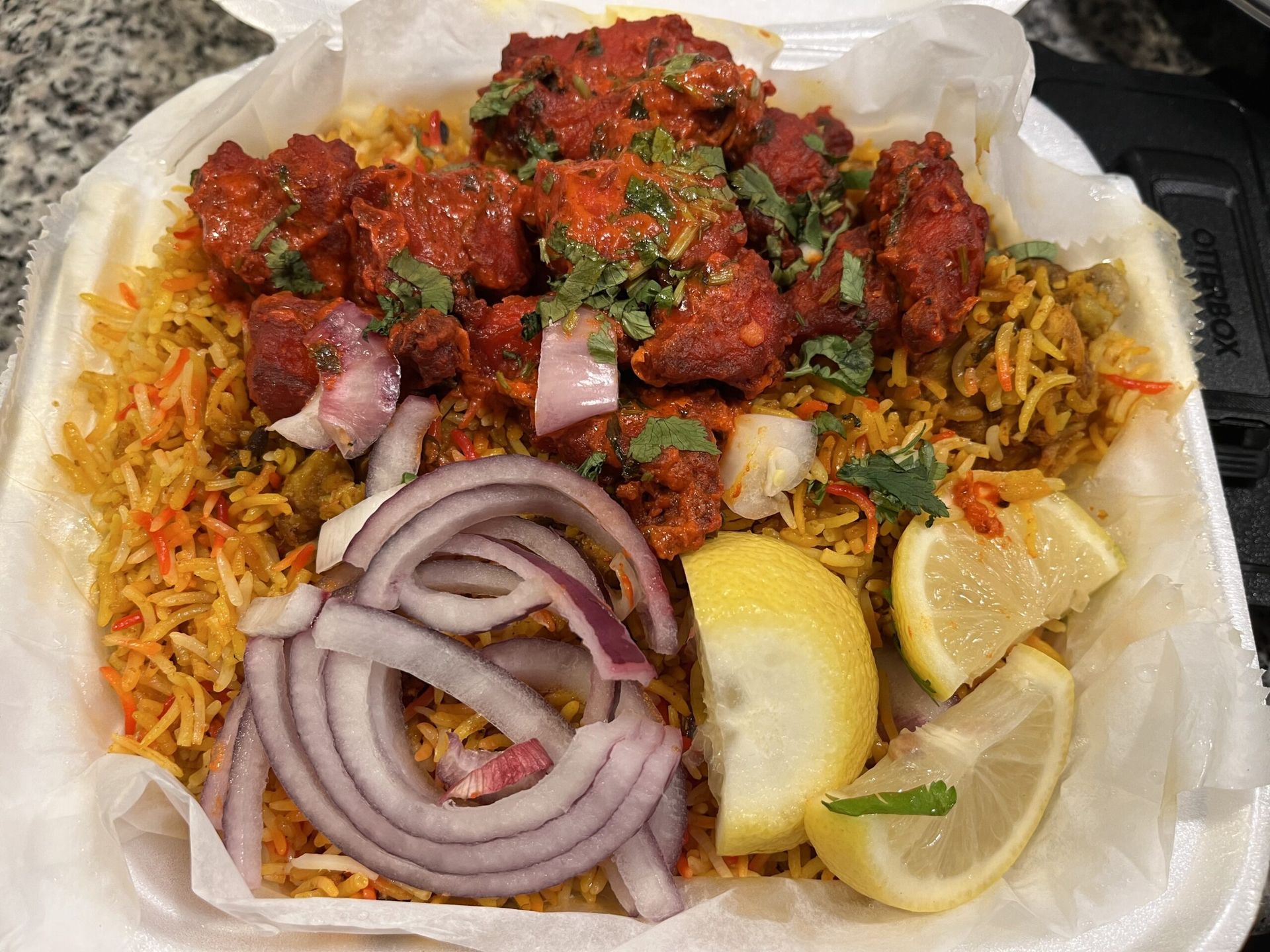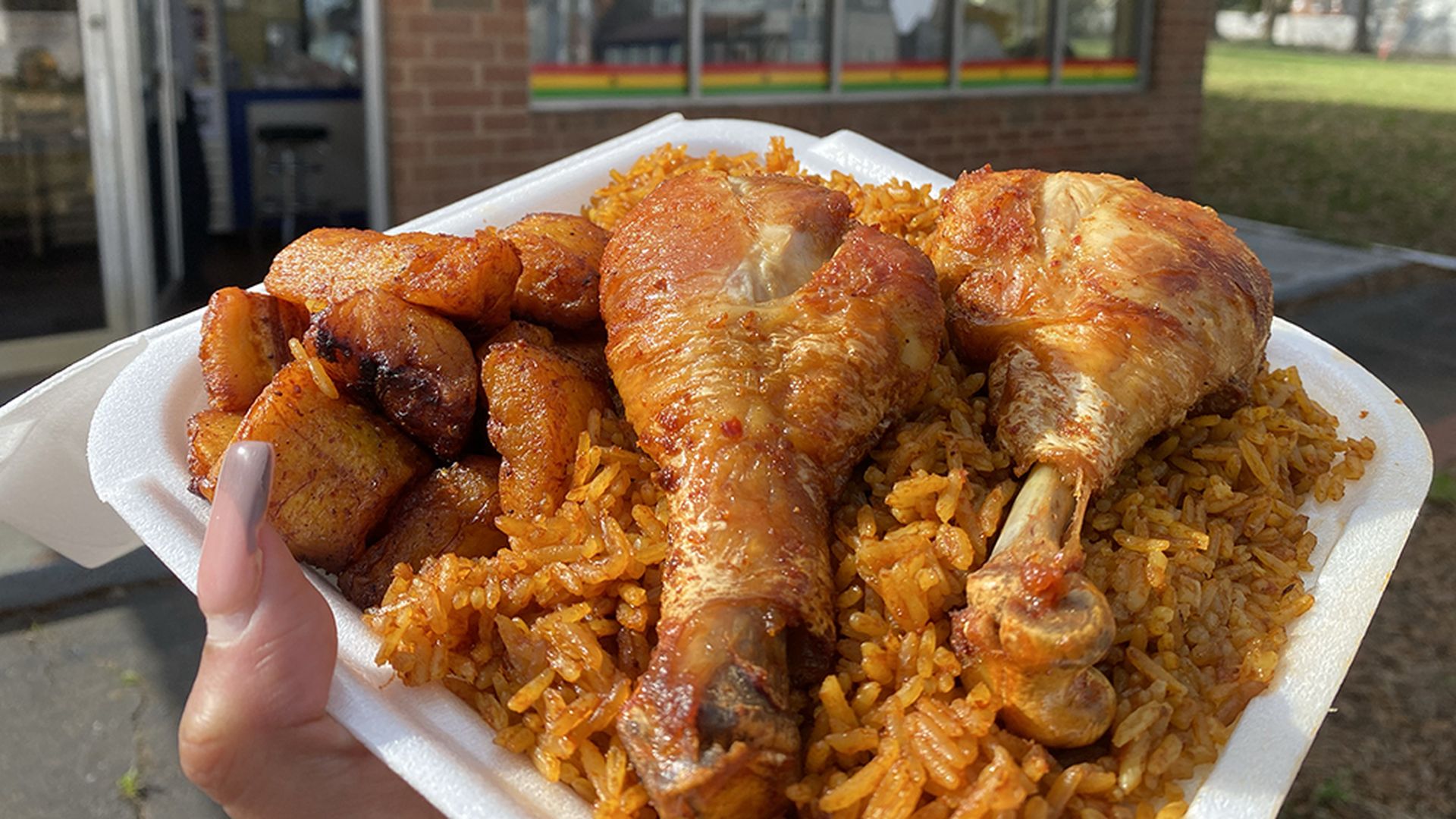 Mama Gee's Jollof rice and chicken. Photo: Alexis Clinton/Axios