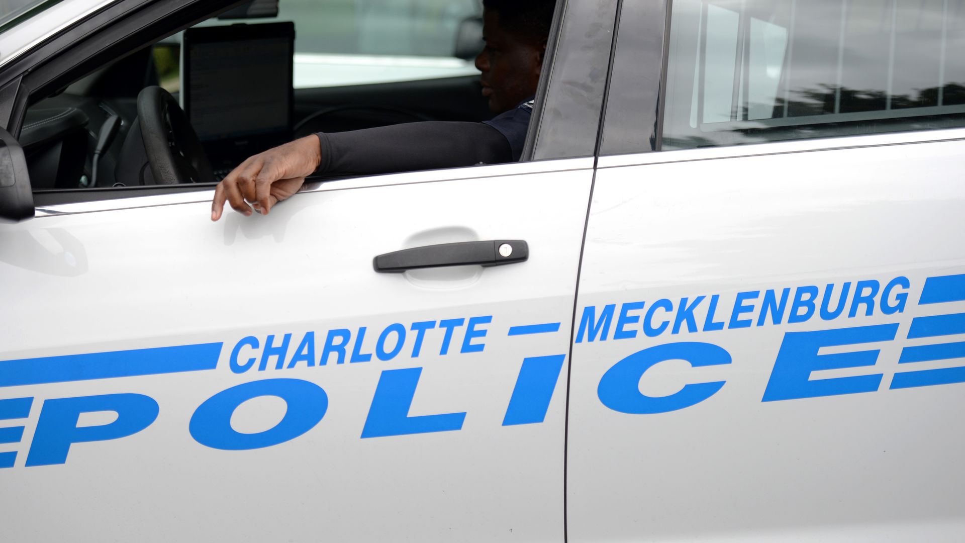 A Charlotte-Mecklenburg police officer is seen inside a patrol car ahead of Hurricane Florence in Charlotte, North Carolina, U.S., on Thursday, Sept. 13, 2018. Hurricane Florences wrath hit the North Carolina coast, but the full effects of the storm, still centered 100 miles from shore, are yet to come. Photographer: Callaghan O'Hare/Bloomberg via Getty Images