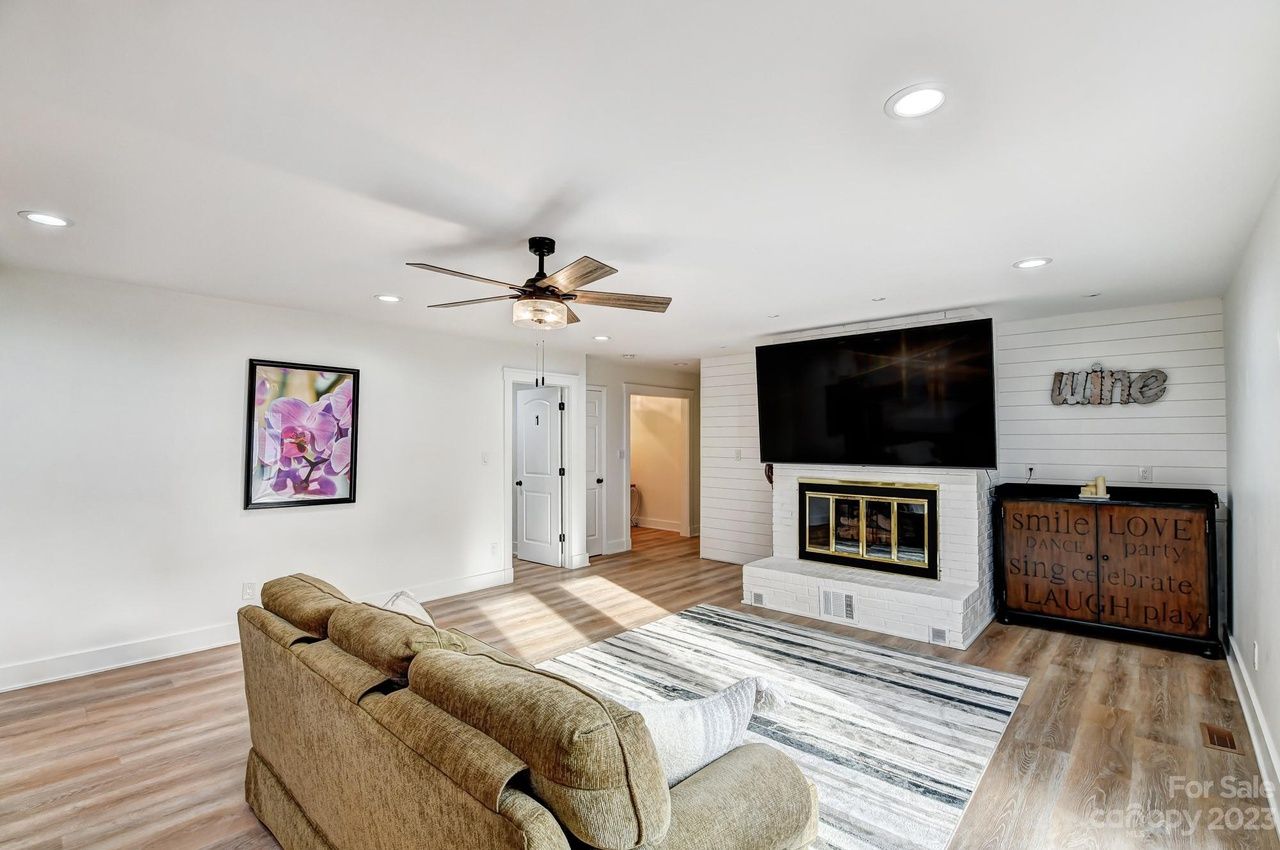 - Notable features: hardwood floors, navy cabinetry, butcher block countertop, sunken den, fireplace, screened-in porch and large backyard.
