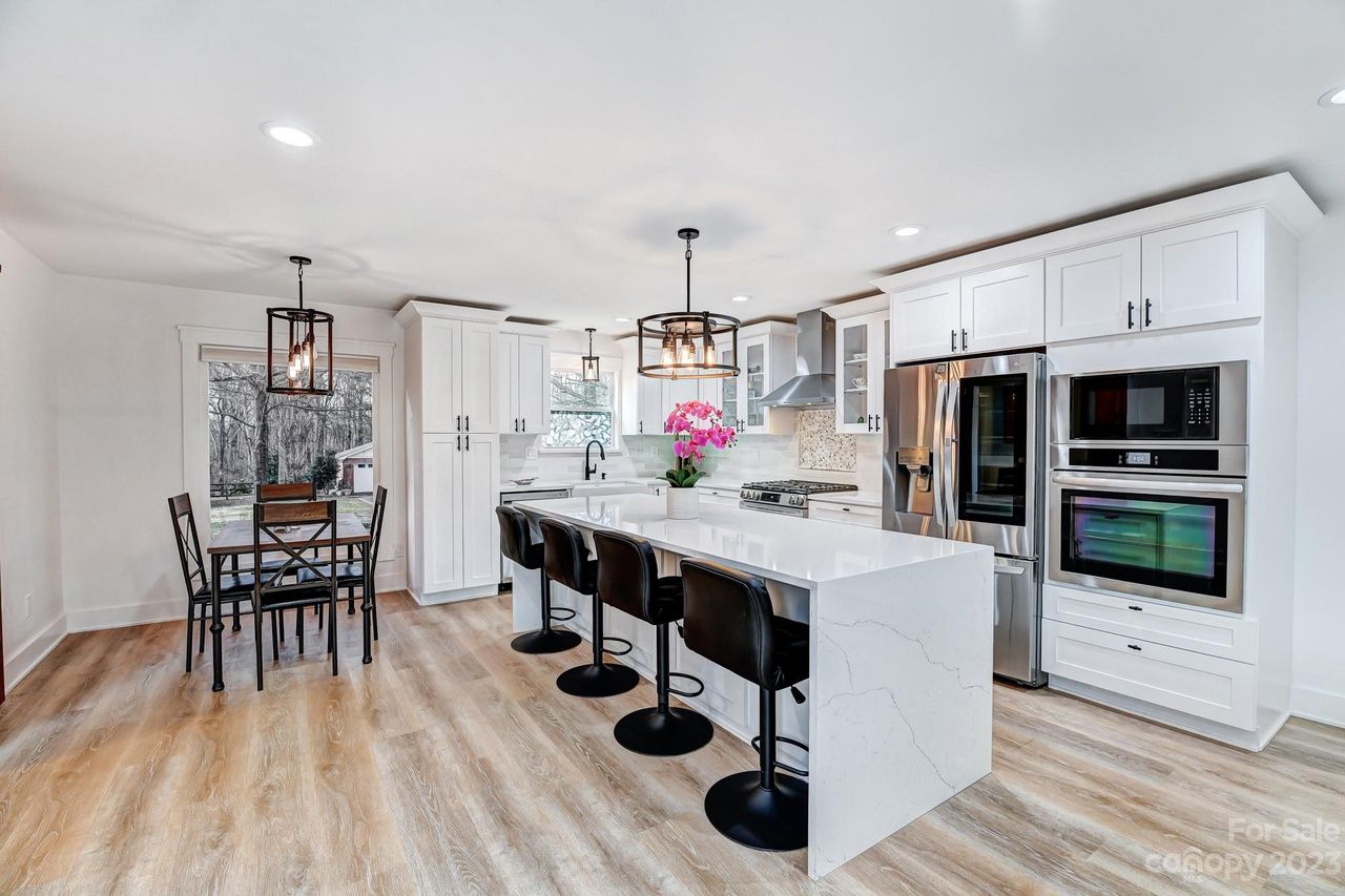 Why we love it: The white kitchen cabinets and light wood floors give the home a bright and airy feel.