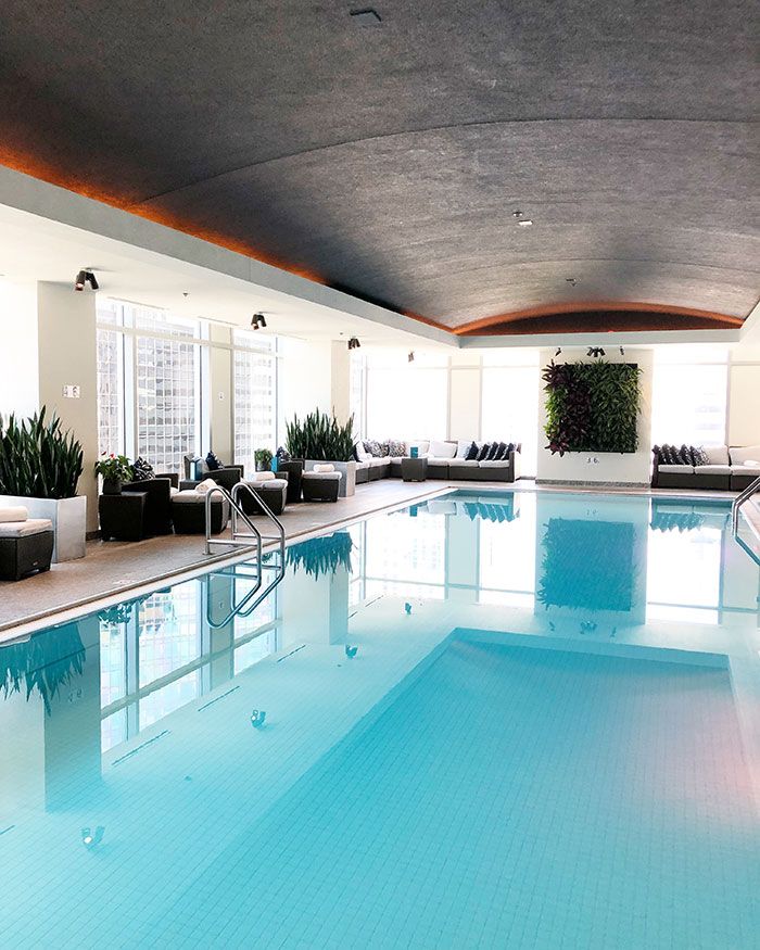 Details: All guests who purchase a spa treatment can enjoy the hotel’s Aqua Lounge, which includes an indoor pool and whirlpool. You sit poolside and sip cocktails in a plush robe while taking in city views.