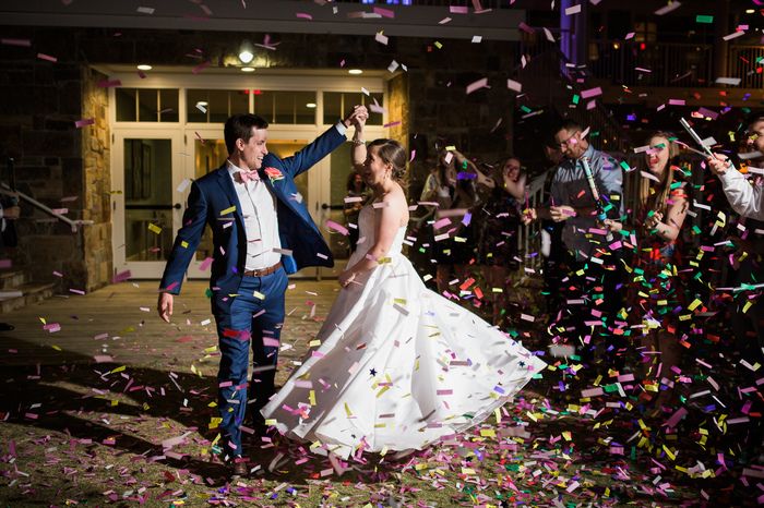 “Do an exit besides sparklers. There are lots of alternatives but, as a photographer, my favorite has definitely been poppers. I’ve seen couples do both streamer and confetti poppers, and the extra boost they get from being popped is a lot of fun for both the couple and their guests and creates some equally fun photos.” – Erin Kranz, Erin Kranz Photography