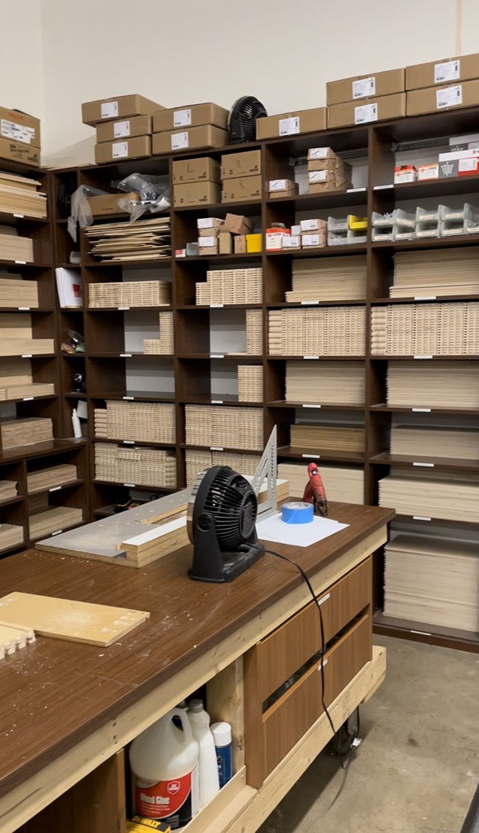 Here’s how: Every piece is measured and cut down to the millimeter. Then, every part is loaded onto a project cart that the installer can then load into the van to deliver to the site.