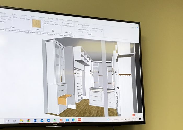 Clients mainly just work with designers as their front-facing contact, but there is also an entire engineering team behind the scenes for every California Closets system to ensure all details are covered on every project. The production review is where they all get together to ensure the finished space will be perfect.