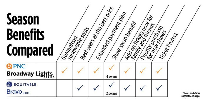 PNC Broadway Lights is Blumenthal’s premier Season Ticket. Benefits include:
