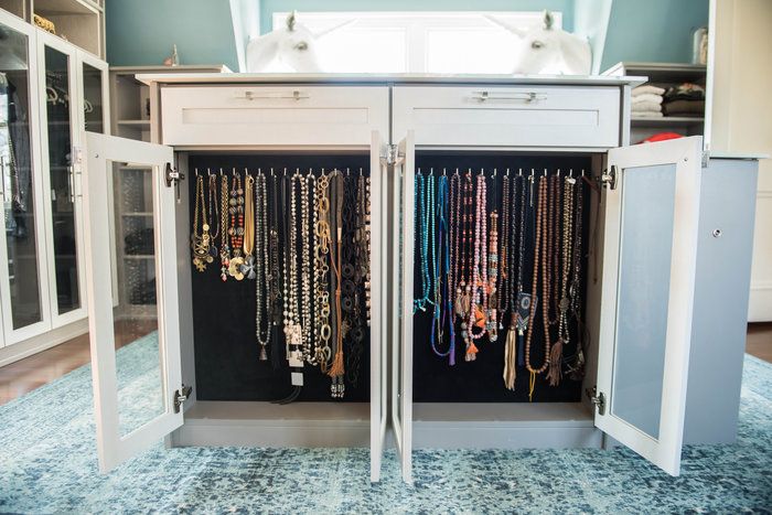 “She travels a lot so we needed a way to showcase her pieces. She has a TON of really cool jewelry from her travels and hats, as well as decorative pieces so the space isn’t really just for clothing storage as it is a show piece for her favorite items, a ‘hideaway’ for herself,” says Haynie.