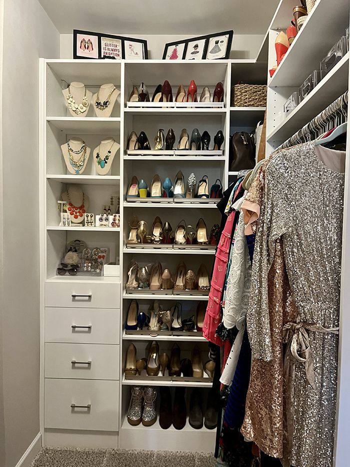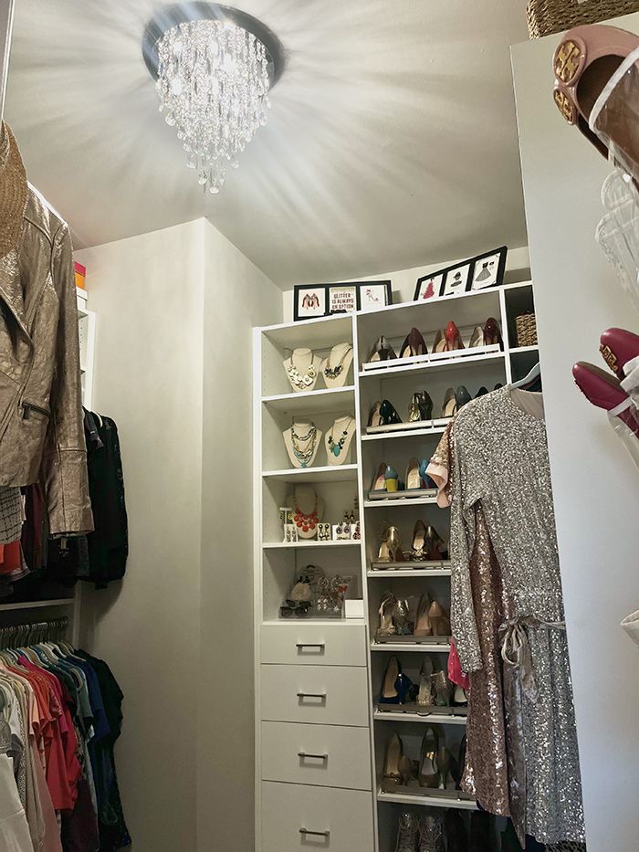 Mariette: I had always dreamed about having an amazing closet with a little chandelier (like you see in the magazines) where I could organize all my sparkly shoes and dresses like they were on display in a retail setting.