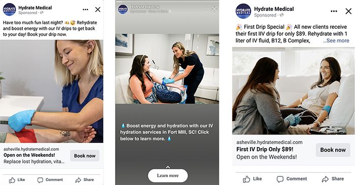Here are some of the top-performing ads Social Ape created for Hydrate Medical: