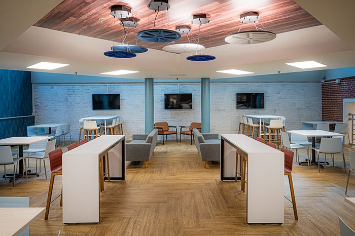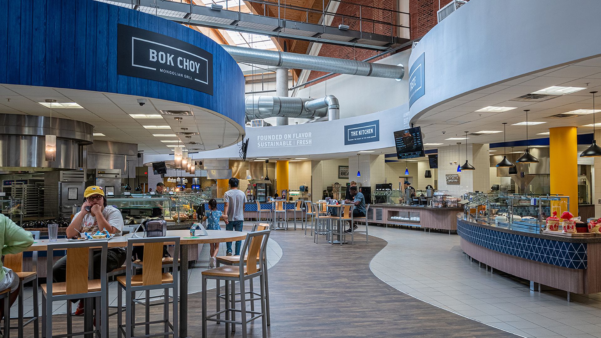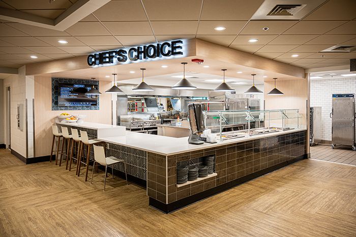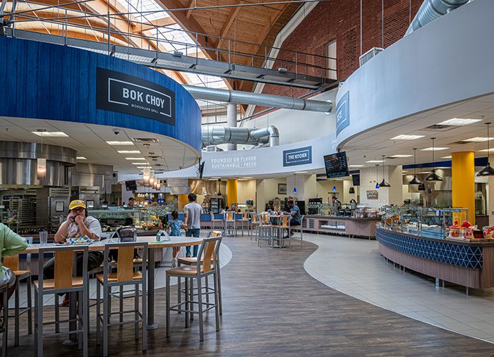 The story: After an influx of admissions, the school needed to update the dining hall from a small dark “room” to a modern, vibrant food hall-like area.