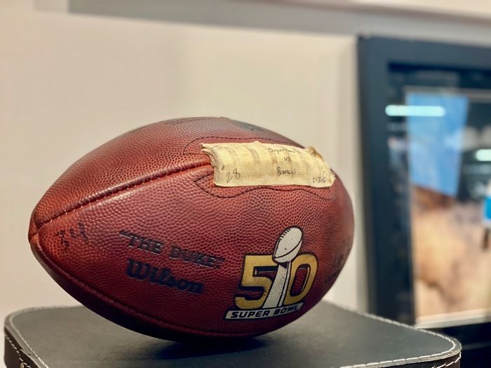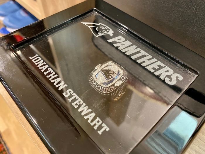 Two of the coolest things you’ll find in Jonathan’s closet are his touchdown ball from Super Bowl 50, along with his 2015 NFC Championship ring.