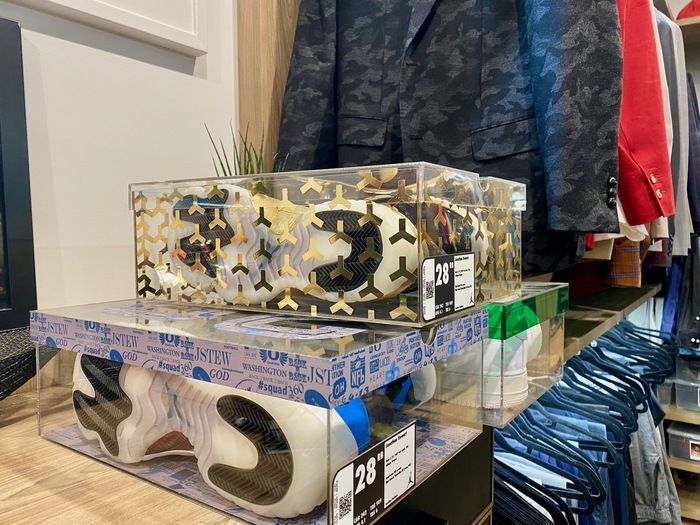 Not included on the impressive shoe wall are stacks of custom pairs, which he keeps safely in boxes.