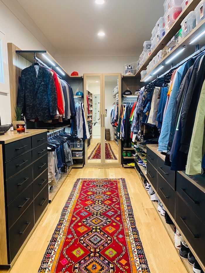 The rug that runs down the middle of Jonathan’s closet is from @KrazyForRugs, an Instagram account run by a local woman who sells rugs out of her house. Wild.