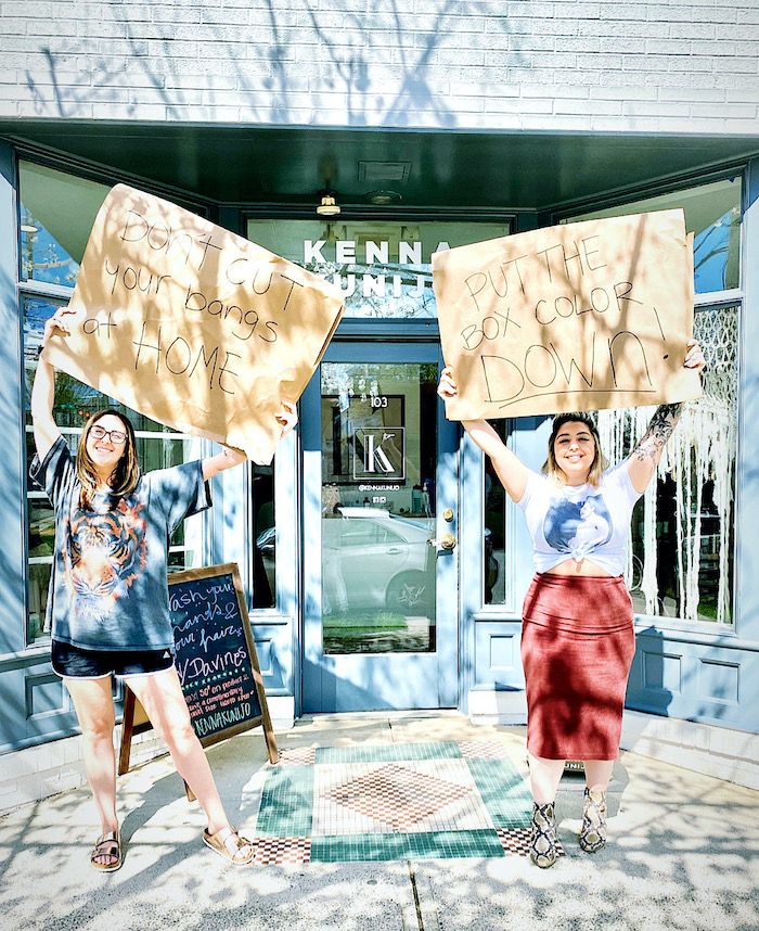 “The service-based industry, the ones that are one-on-one and can’t take the business online, those businesses are really struggling. I would urge people to hold out and support their stylist,” Kenna says.