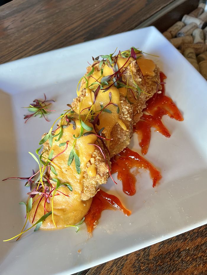 Fried Green Tomatoes: Served with pepper jam and melted pimento cheese.