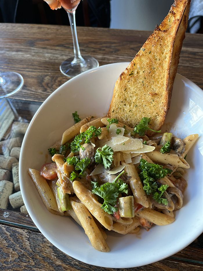 Cajun Pasta: Choice of grilled chicken or sautéed shrimp with andouille sausage, tomato and penne tossed in a Cajun cream sauce with garlic bread.