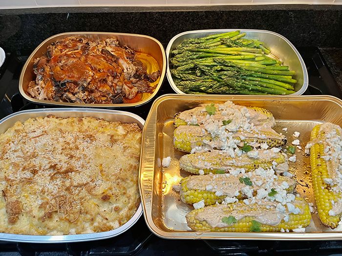 We ordered the 14-hour smoked pulled pork ($39.99), gouda macaroni and cheese ($21.99), Mexican-style street corn ($15.99), asparagus with lemon zest ($15.99), and cornbread with honey butter ($5.99). Check out all the options.