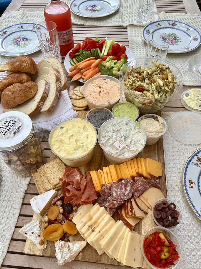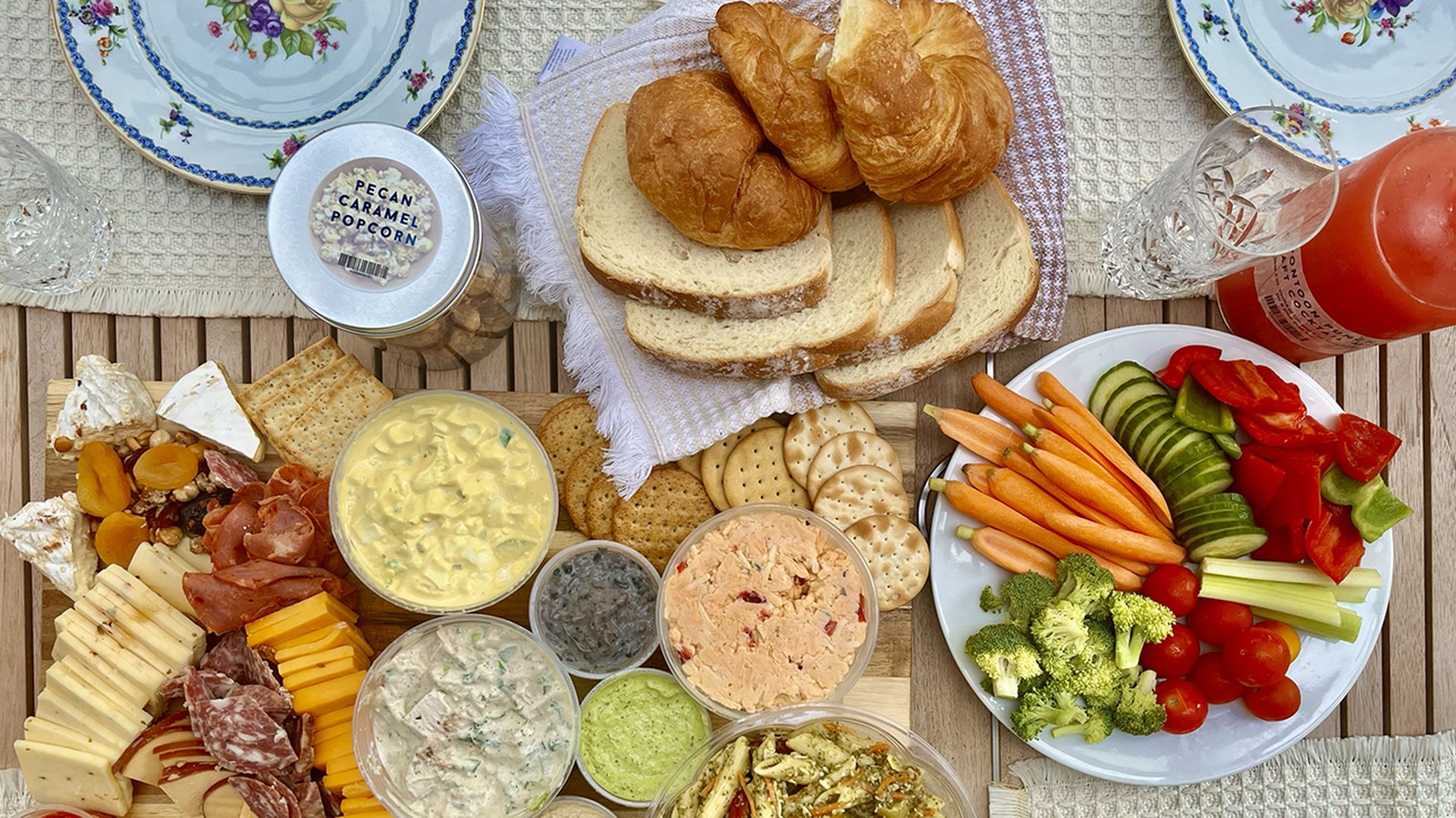 We ordered the picnic package (designed to feed up to six for $99.99) that includes antipasto, dips, pasta salad, bread and croissants, punch mix, and caramel popcorn.