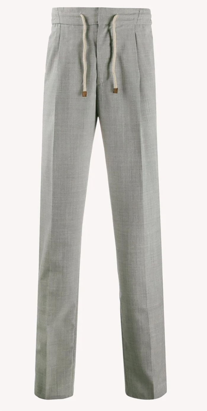 Brunello Cucinelli single pleat joggers in light grey ($975)