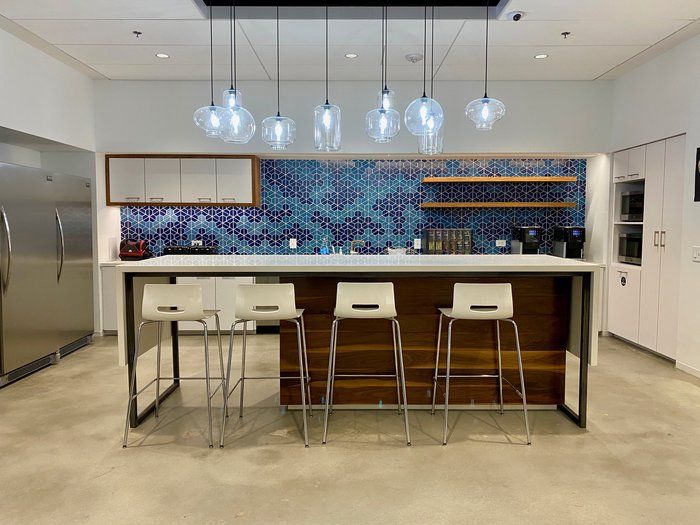 Their office is ultra modern, with an open floor plan. And all of their desks can transform into standing desks, which is a cool perk.