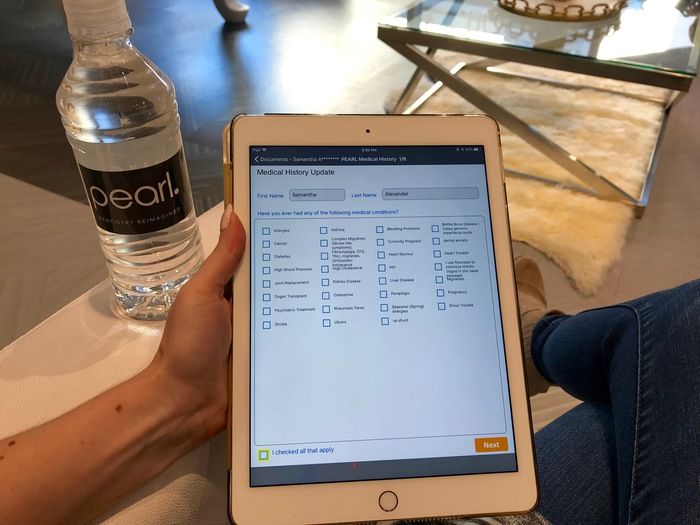 I was greeted by Emily, one of their receptionists, who took my coat and got me a bottle of water. Instead of the usual clipboard paperwork, she handed me an iPad to fill out medical history and info.