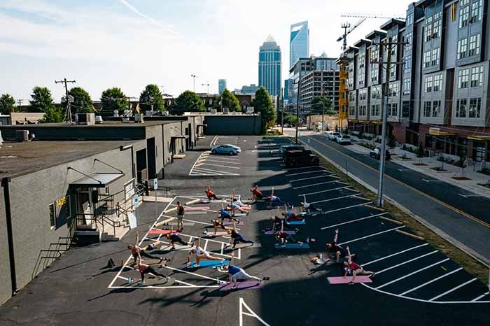 For some of us, that means it’s been four months since we did a yoga flow or picked up dumbbells. Luckily, if you’re looking to revamp your fitness routine, there are plenty of spots in Charlotte offering safe alternatives to indoor classes. Virtual and outdoor classes are allowed under phase 2 and have become the new normal as gyms and studios adapt to keep everyone safe. When you’re attending an in-person class, expect precautions like a mask requirement (typically whenever you’re actually exercising), six-foot spacing between participants, and sanitized equipment or a request to BYO.