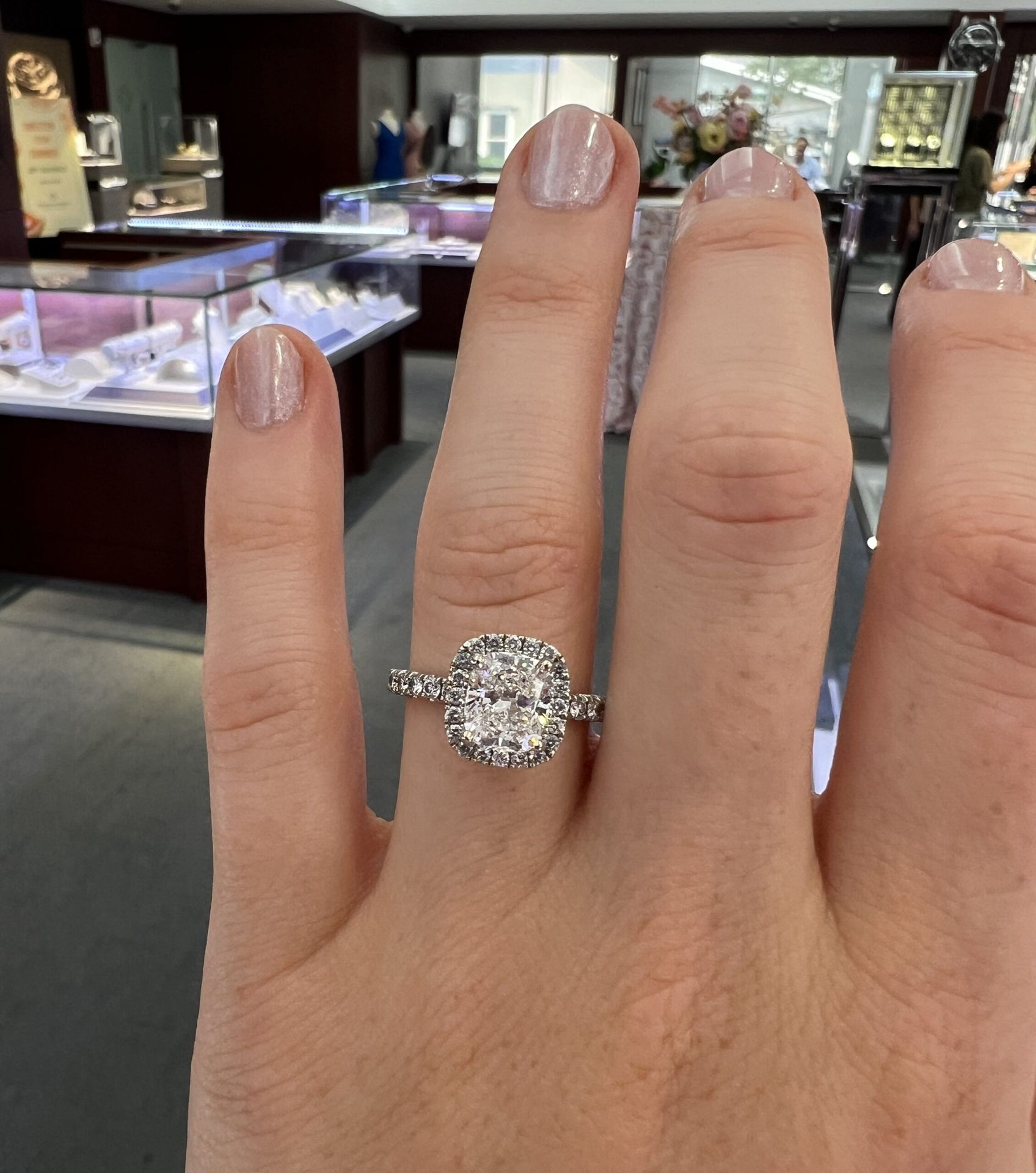 What to expect: It takes around 4-6 weeks for Diamonds Direct to make your ring, with some exceptions. If you’re planning the proposal around a special event or vacation, make sure to account for that.