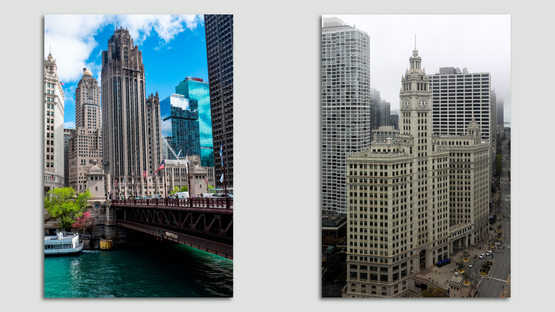 Tribune Tower (left) and the Wrigley Building. Photos: Robert Knopes/Education Images/Universal Images Group via Getty Images, Raymond Boyd/Getty Images