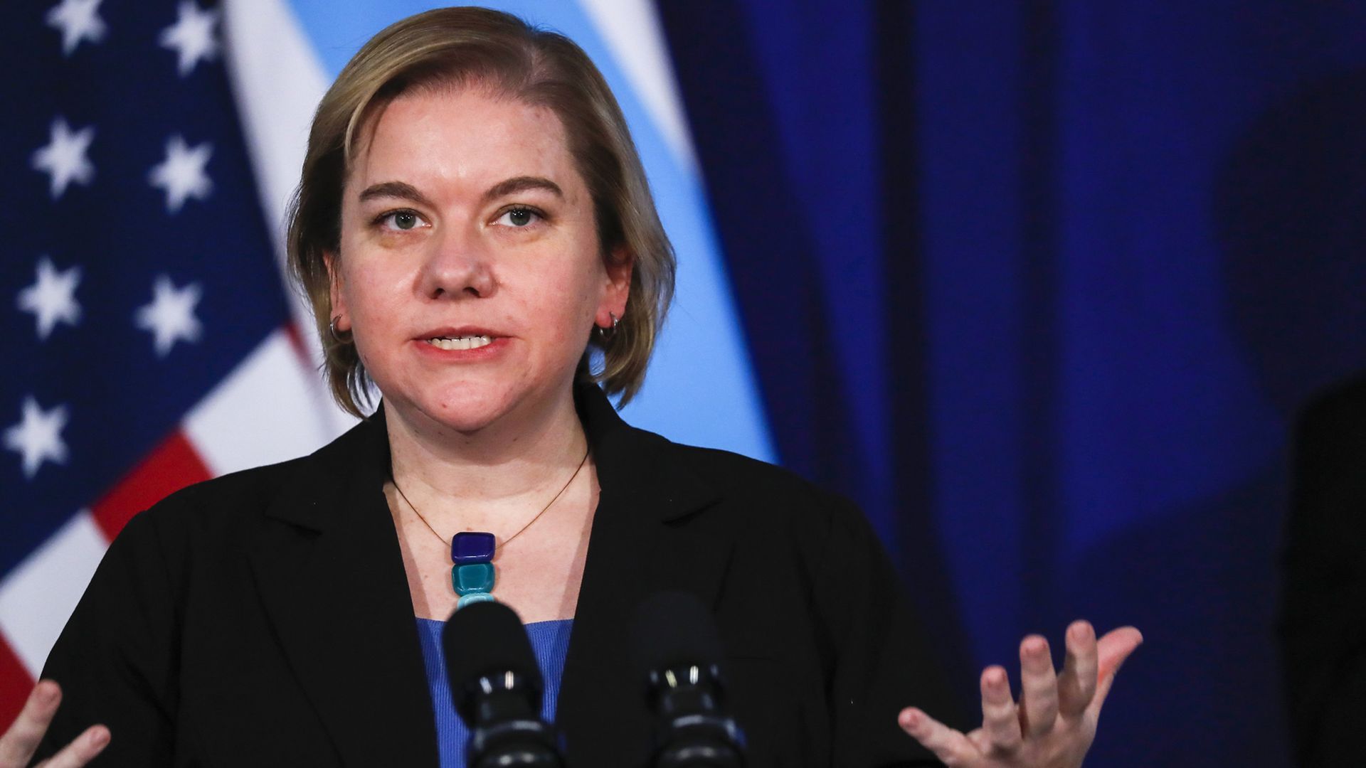 Allison Arwady holds a press conference when she was the head of Chicago's Department of Public Health in 2021. Photo: Jose M. Osorio/Chicago Tribune/Tribune News Service via Getty Images