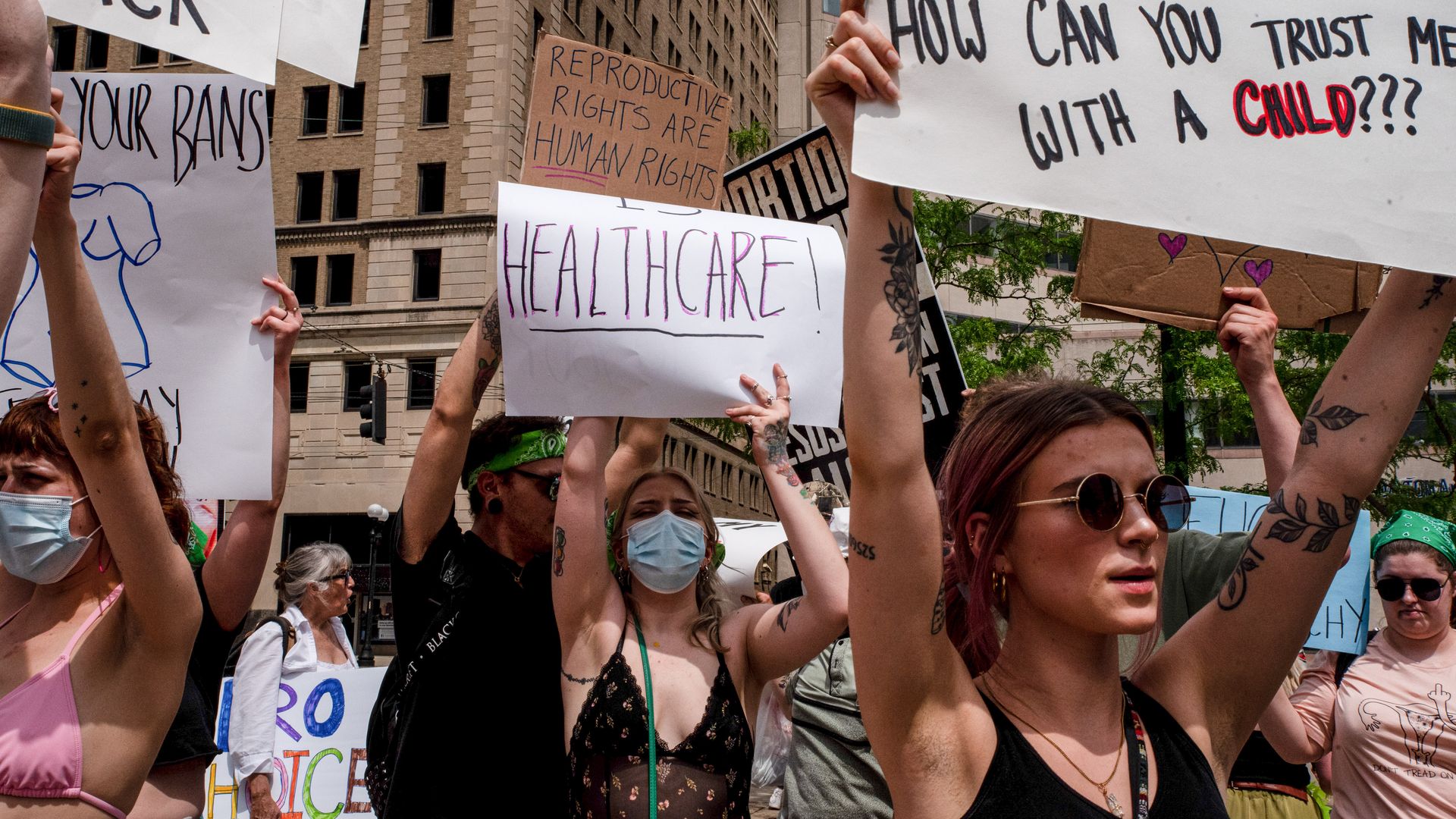 Abortion rights protesters at a 2022 rally in Dayton. Photo: Whitney Saleski/SOPA Images/LightRocket via Getty Images