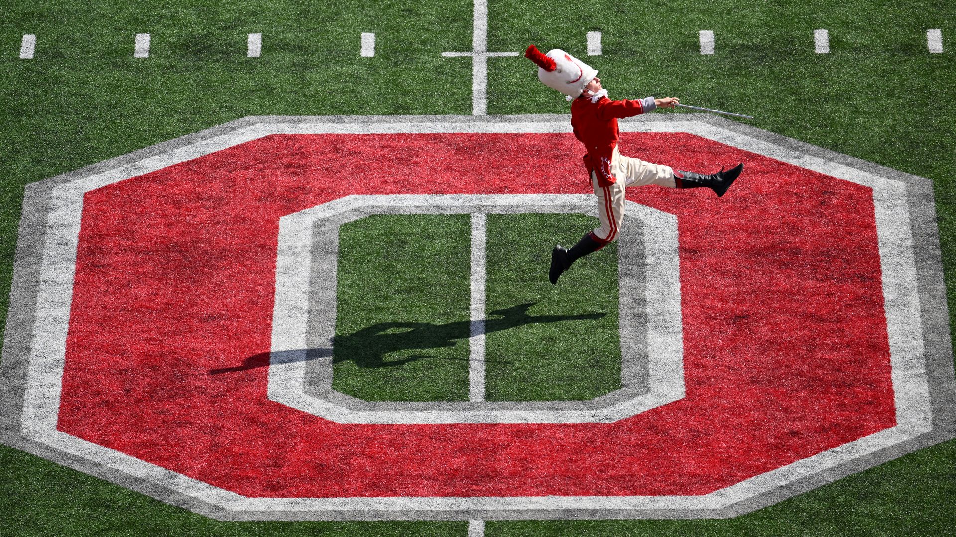 Drum major Clayton Callender leads Ohio State's marching band onto the field prior to a game earlier this season. Photo: Ben Jackson/Getty Images