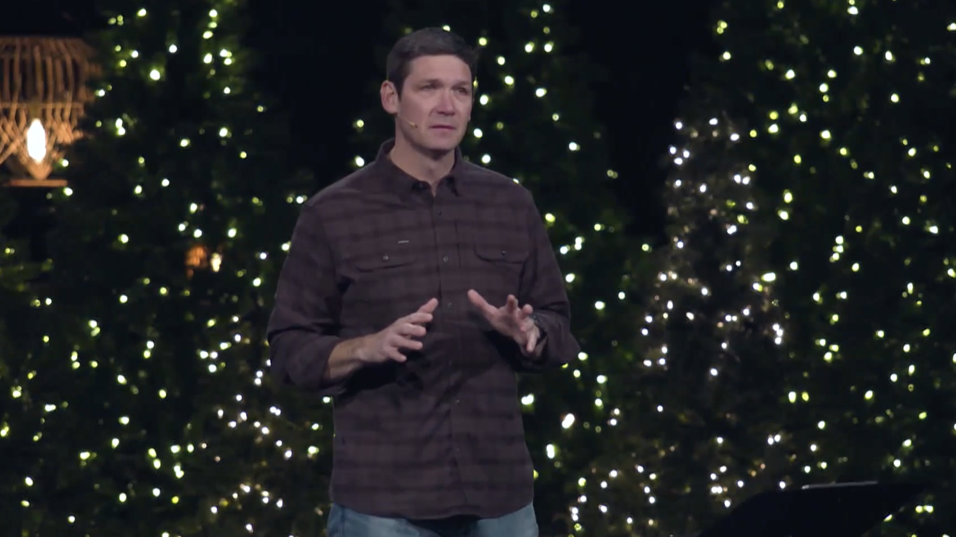 Pastor Matt Chandler became emotional on Sunday, while addressing his congregation for the first time in months. Screenshot: Village Church