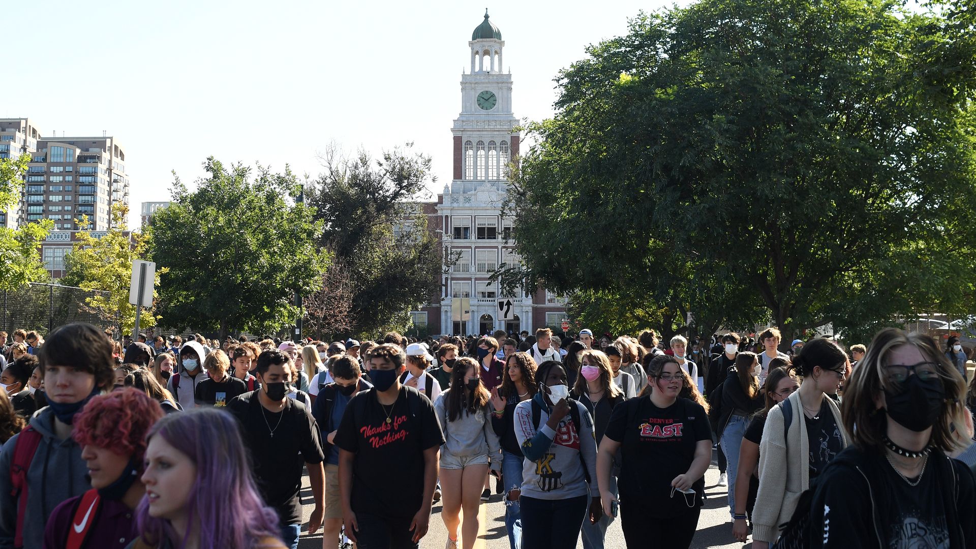 Students at East High School walk out of class to protest school board member Tay Anderson on Monday. Photo: RJ Sangosti/The Denver Post via Getty Images