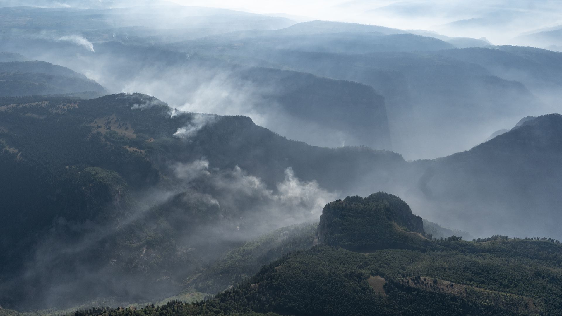 Smoke blankets Glenwood Canyon and Interstate 70 in August 2020. Photo: Alex Edelman/Getty Images