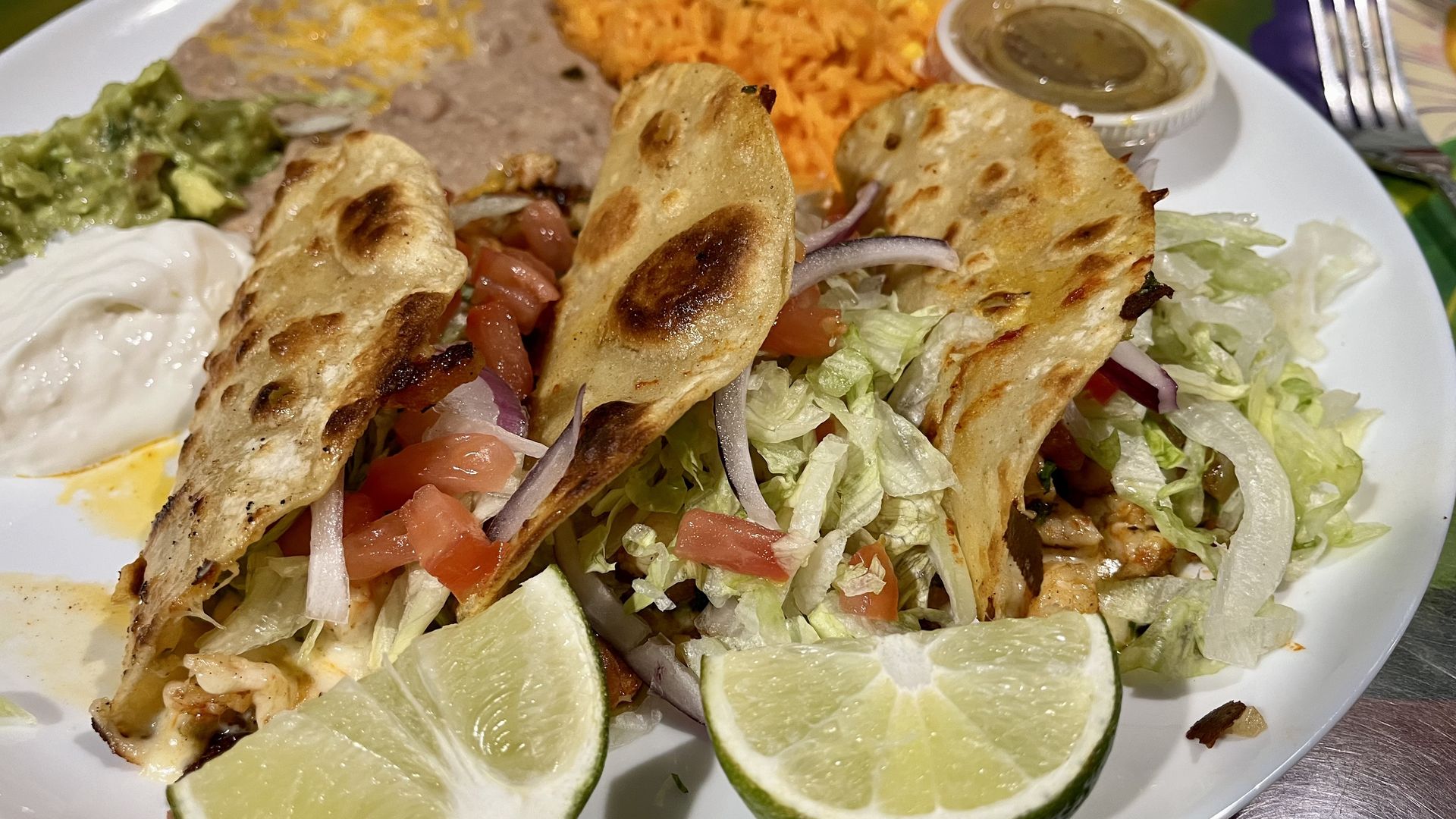 The tacos gobernador plate at Puerto Vallarta Mexican Restaurant. Photo: Alayna Alvarez/Axios