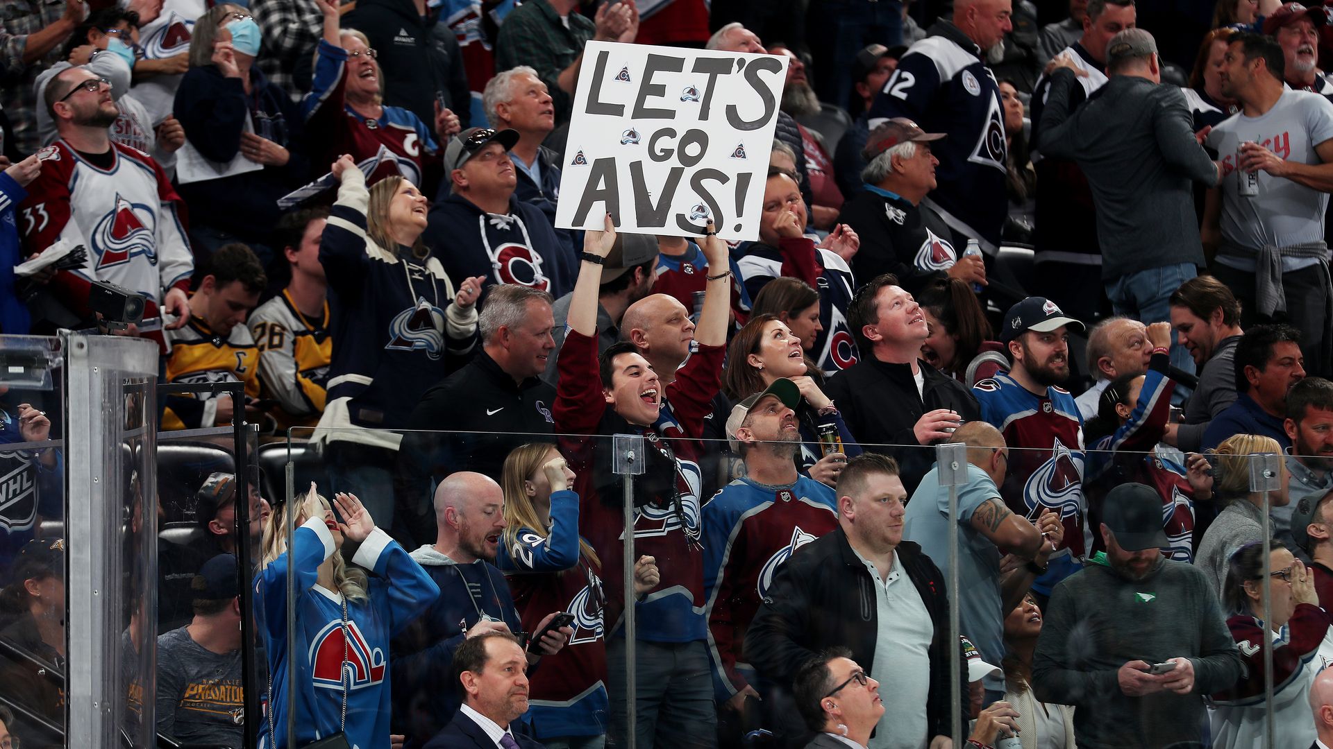 A fan of the Colorado Avalanche holds a sign in a game against the Nashville Predators in April. Photo: Michael Martin/NHLI via Getty Images