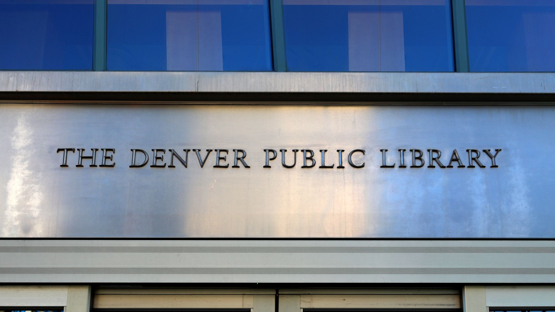The Denver Public Library signage on the Burnham F. Hoyt Rotunda. Photo: Raymond Boyd/Getty Images