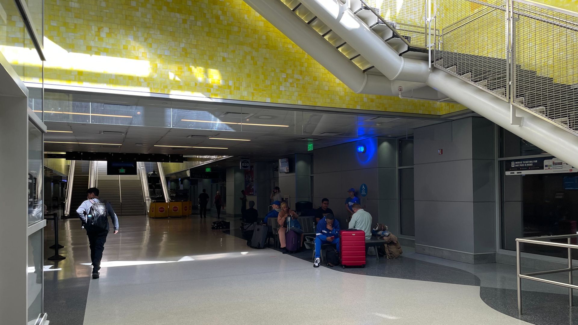 People wait in the underground concourse at Union Station on Aug. 24 in Denver. Photo: Esteban L. Hernandez/Axios