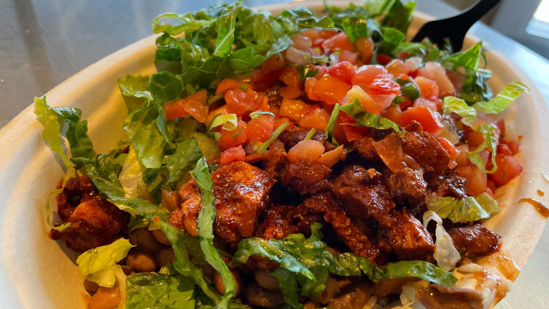 Chipotle's new chicken al pastor in a burriton bowl in Denver on Aug. 30. Photo: Esteban L. Hernandez/Axios